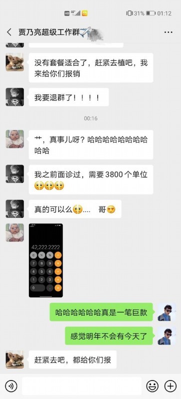 12月12日凌晨,贾乃亮工作室晒出了老板突然在员工群发福利的画面,配文写道:“双12又来了!熟悉的亮老板又回来了!今年老板赞助我们植发”语气里也是非常兴奋,对待员工贾乃亮可是非常认真的,还晒出了相关的聊天记录。