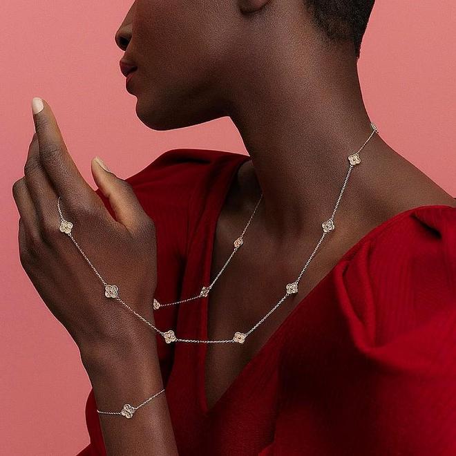 要说梵克雅宝VCA珠宝最具代表性的系列,非「Alhambra」莫属!这个系列自1968年诞生,以四叶幸运草为灵感,搭配金质圆珠饰边,运用珍珠母贝、玛瑙、绿松石等材质,不仅设计本身的优雅百搭,更因其蕴含的幸运寓意与收藏价值,成为「入门高级珠宝」的首选之一。根据2025年The RealReal转售报告,Alhambra系列的二手市场表现强劲,今年转售价值更上涨20%,稳坐投资珠宝宝座。凭借黄K金、白K金与珍稀材质的稀缺性,加上经典设计的跨世代魅力,Alhambra已成为新娘、职场女性与收藏家的梦幻逸品。