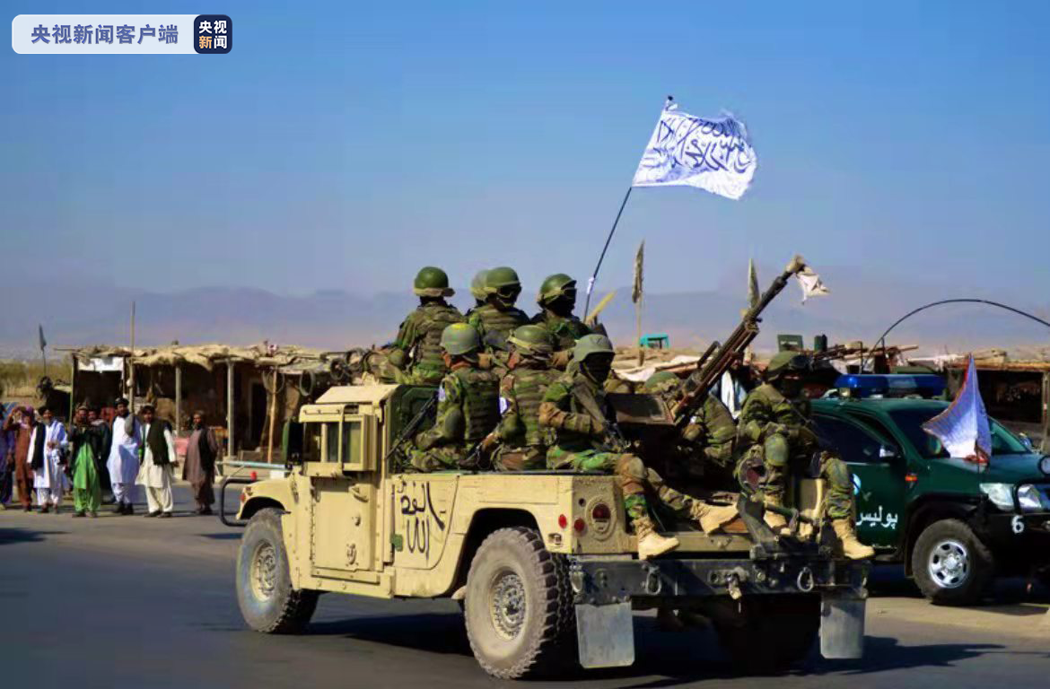 图为2021年11月8日,阿富汗塔利班在坎大哈市举行了阅兵,展示了包括直升机、装甲车在内的大量美式装备。 图自央视新闻客户端
