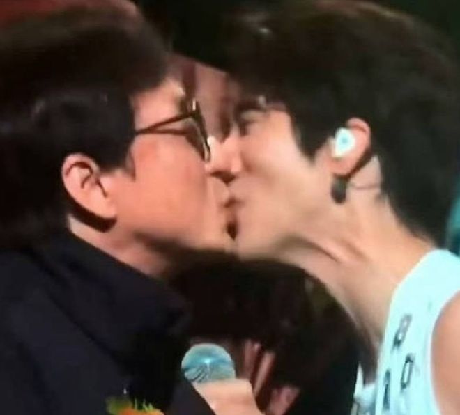 事实上,这并非他们第一次在公开场合嘴对嘴亲吻。两人曾在 2009 年的一场活动中,以及 2012 年香港演唱会、2018 年上海演唱会上,都有过同样亲密的举动,这一行为似乎已成为他们合作演唱会的固定环节。
