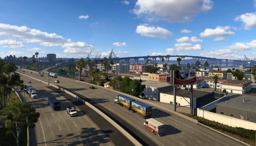 玩家扮演的卡车司机从加州开始接单,新手出生在美国南方边境最西端的圣迭戈