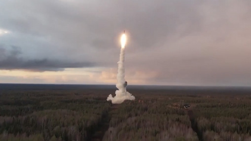 2024年10月29日,俄罗斯在战略核力量演习期间发射洲际弹道导弹。 视频截图