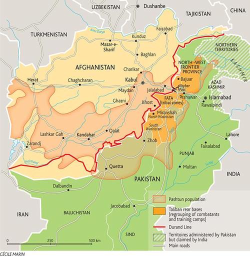 所谓“杜兰德线”,是1893年大英帝国人为划设的、阿富汗王国和英国殖民地之间的界限,并随后成为了巴、阿两国之间的国界线。这一国界线带来的问题,包括人为分割了原本聚居于兴都库什山脉和苏莱曼山脉两侧的普什图部族,乃至将作为阿富汗和巴基斯坦之间战略要隘的开伯尔山口也划给了巴基斯坦。阿富汗塔利班始终坚持带有普什图民族主义色彩的德奥班德主义和普什图瓦里的“大普什图主义”理念,这使得“杜兰德线”问题迅速演变为横亘在巴基斯坦与阿富汗之间一道难以解开的死结。