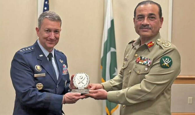 当地时间8月10日,巴基斯坦陆军参谋长穆尼尔会见美军参谋长联席会议主席凯恩。阿拉伯新闻网