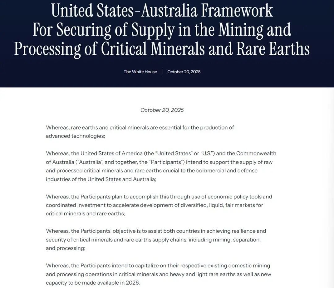 明年中期选举前两边还要再博弈,这等于在特朗普头上悬了一把达摩克利斯之剑。对我们这边这当然是好筹码。对特朗普来说,他可能是真心相信了稀土就是采矿问题,相信美澳矿产协议包括美日矿产协议真的能帮他在2026年就解决稀土卡脖子的问题吧。