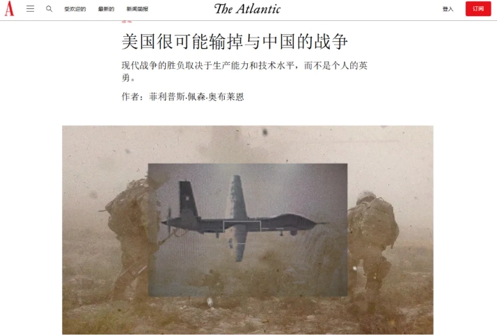 说这件事的,是美国最受尊重的期刊《大西洋月刊》。前两天,它刊登了一篇文章,标题很直白,“美国很可能输掉与中国的战争”,作者是美国战争历史学家菲利普斯·奥布莱恩(Phillips Payson O’Brien)。