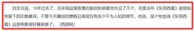 甚至在2011年,有一位网友翻阅《榆林市志》的时候翻到了相关记载,专门拍下来传到网上,当时还小小发酵了一下。后来有记者特意就此事去采访了《东邪西毒》取景地的办事处办公室主任。要不人家是主任呢,说话相当有水平了,表示电影好看最重要,希望大家不要过度关注这桩丑闻,对于丑闻背后的细节他也不清楚。体面是留给榆林的,至于剧组的体面,主任也给了,网友怎么想他们就管不了了,反正丢脸的不是主任,谁丢脸谁清楚。