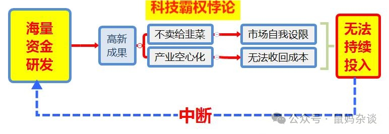 二是美元霸权导致产业空心化,产业空心化导致高新成果无法产业化,科研投入成了沉没成本,进而导致科技霸权中断。