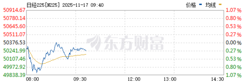 当地时间11月17日,东京股市于早段下跌,日经平均指数一度失守5万点大关,其中日本旅游类股大幅下挫,其他消费品和零售股也全面下跌。