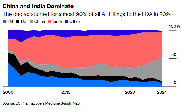 报道指出,更复杂的是,印度作为全球最大的仿制药供应商,本身在关键起始材料上就高度依赖中国,而这并未在FDA备案中反映。