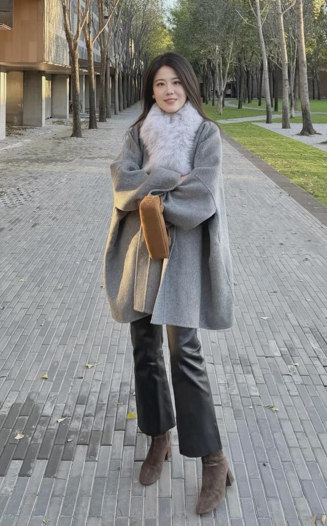 一点都不会显得突兀,整体温柔得很。或者是穿一件浅灰色大衣自带慵懒感,腰带松松垮垮系着,就很随性。