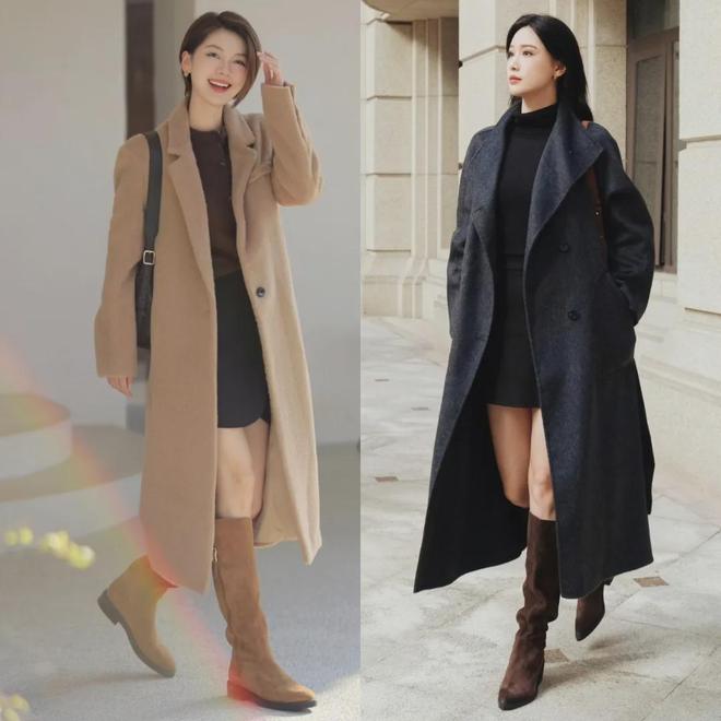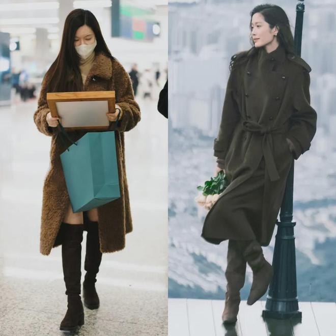 长筒麂皮靴的表面也有绒毛,跟大衣配在一起的时候。显得很温柔,而且可以打造多种不同的风格。比如: