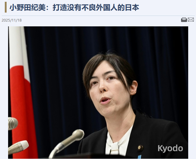 11月17日,日本经济安全保障相小野田纪美表示,关于外国人政策“要坚决应对部分外国人的违法及违规行为”。她同时兼任高市早苗政权新设立的“与外国人有序共生社会”的负责阁僚。她表示“要打造不良外国人不在日本的环境”。日经中文网