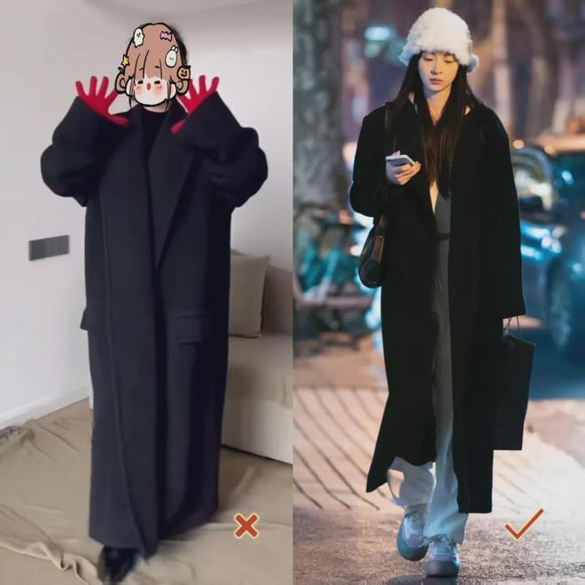我们都知道大衣是比较厚的,尤其是长款大衣,所以如果是宽大的版型,穿上之后,我们就像是被大衣压着一样,看起来很笨重臃肿。