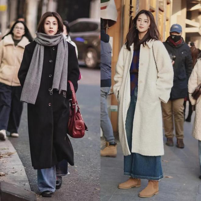 另外,上海、杭州的小姐姐们,穿的大衣不会很长,大多是“到小腿中间”的长度,刚好盖过膝盖,露出脚踝下面一点的裤子和鞋子,层次感一下就出来了,还不会显得拖沓。