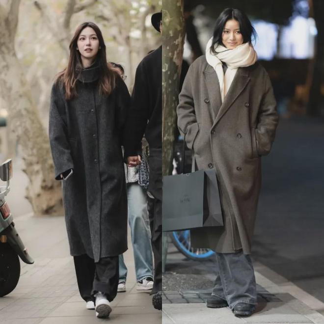 所以上海、杭州街拍里的小姐姐们穿的大衣,基本不会是那种特别宽大的,她们穿的大衣,要么是H型,要么是微茧型。