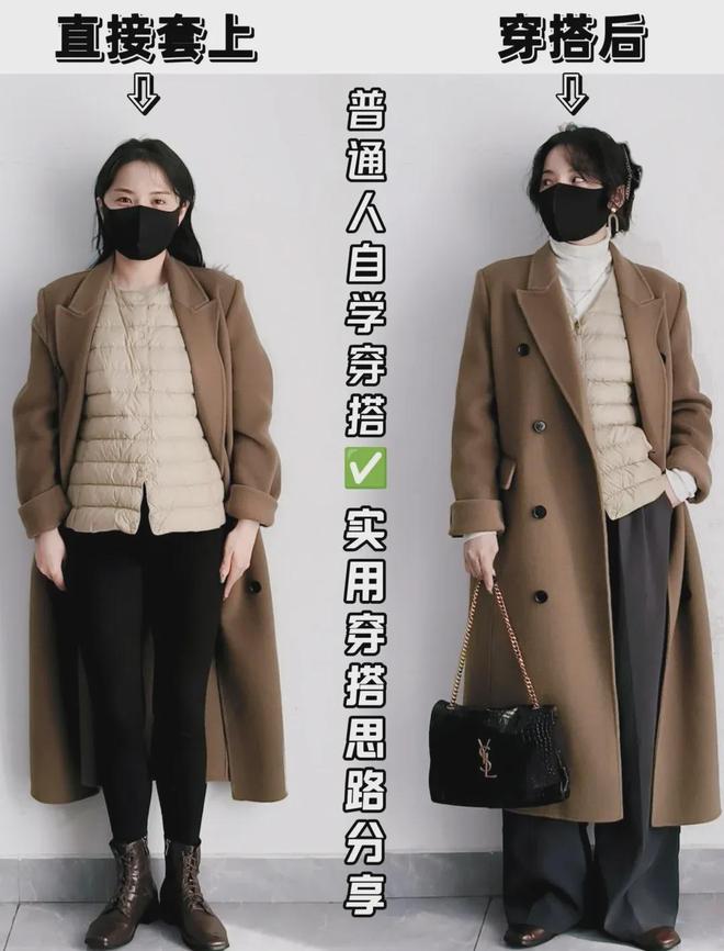 本来还没多大的感觉,前不久刷到一些关于大衣“会穿”和“不会穿”的对比图,才一下子觉得差别也太大了。