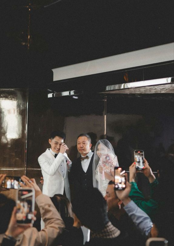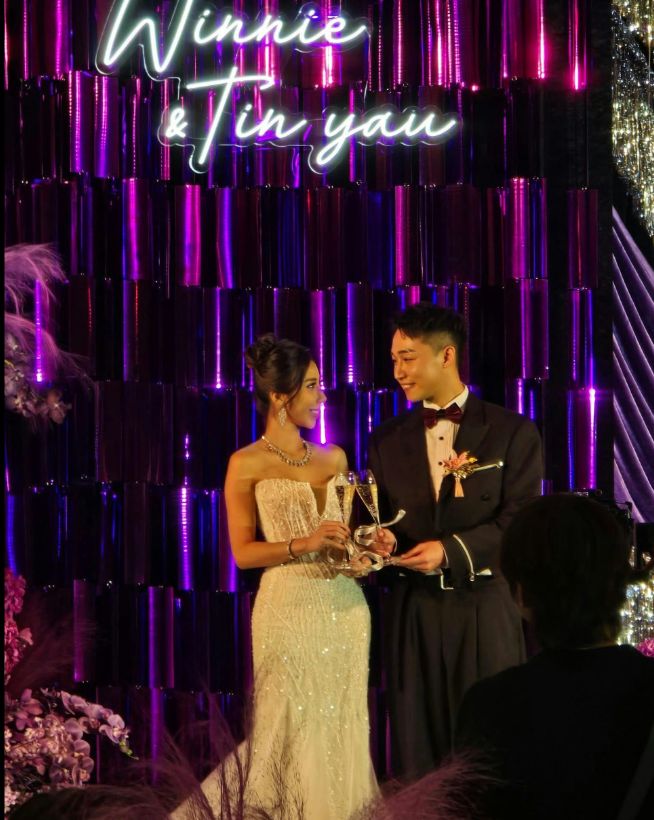 证婚仪式及晚宴在酒店的钻石宴会厅举行,容天佑邀请了多位娱乐圈台前幕后的好友出席婚宴,包括李司棋、崔建邦、张颕康、向海岚及何依婷等。