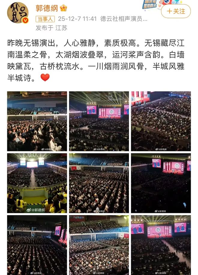 面对约谈传闻,郭德纲始终没有正面回应,反而在12月7日晚发了一条看似无关的微博,夸赞江南水乡“藏着温柔之骨,藏着人间烟火”,字里行间避重就轻,估计是想轻描淡写把这事带过去。