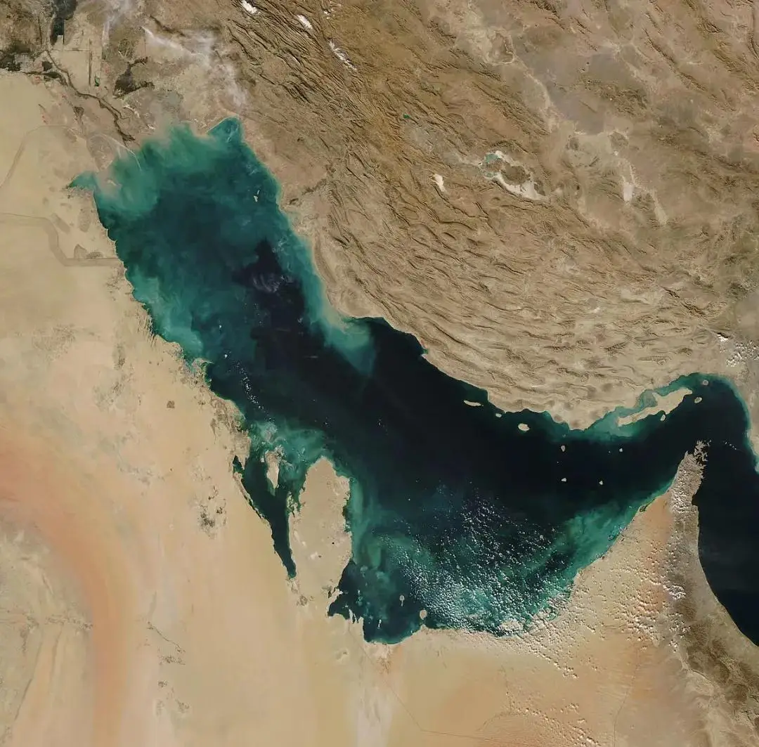 波斯湾卫星图,伊朗西南地区整体山地偏多
