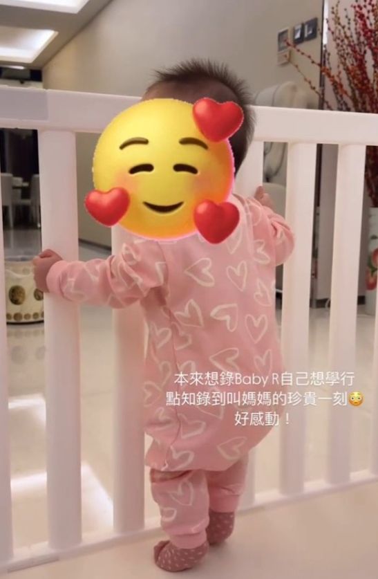 据悉早前何依婷上传了一段短片,写道:“本来想录 Baby R 自己学走路,没想到拍到了叫妈妈的珍贵时刻,好感动!”