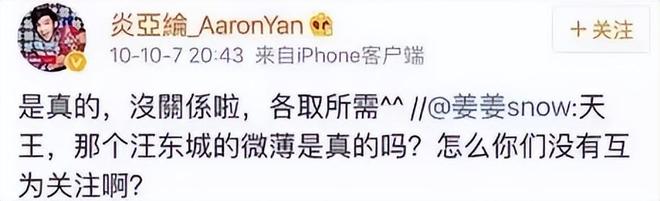 炎亚纶三天两头在微博上对汪东城示爱,但汪东城连个关注也不给,说不定早就拉黑了。