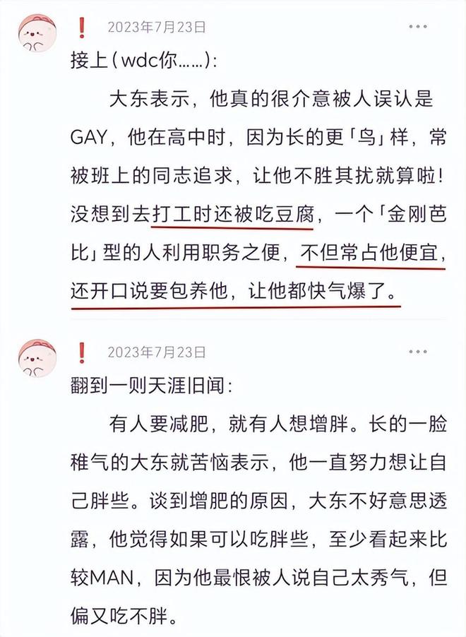 本来以为只是偶然,没想到后来一发不可收拾。后来汪东城兼职打工,他当时做的工作需要给客人量腰围,本来一份普通的服务岗,却每天都要遭遇同性客人的暗示。