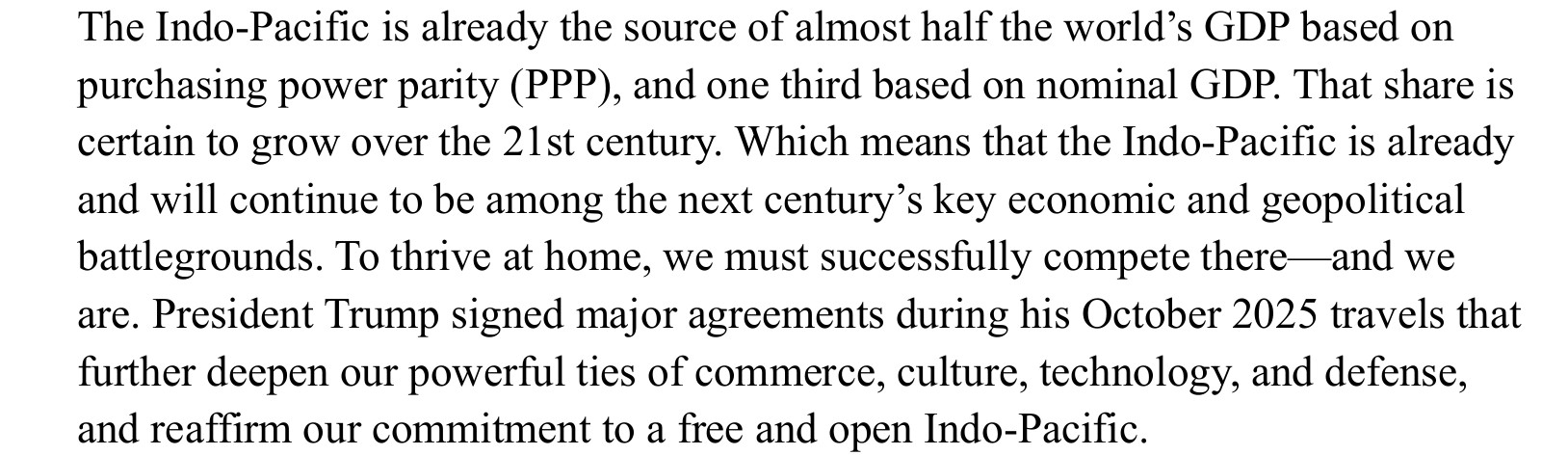 重要的是,这一经济战略必须配以持续且强有力的威慑体系,以防范印太地区爆发冲突。这种双轨策略可形成良性循环:强大的美国威慑力为更有章法的经济行动创造空间,而更规范的经济行动又将为长期维持威慑能力提供更多资源保障。”