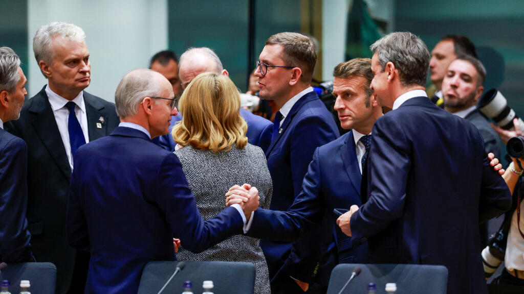 2025年12月18日,法国总统马克龙和卢森堡首相弗里登在比利时布鲁塞尔出席欧盟领导人峰会时互相问候。路透社