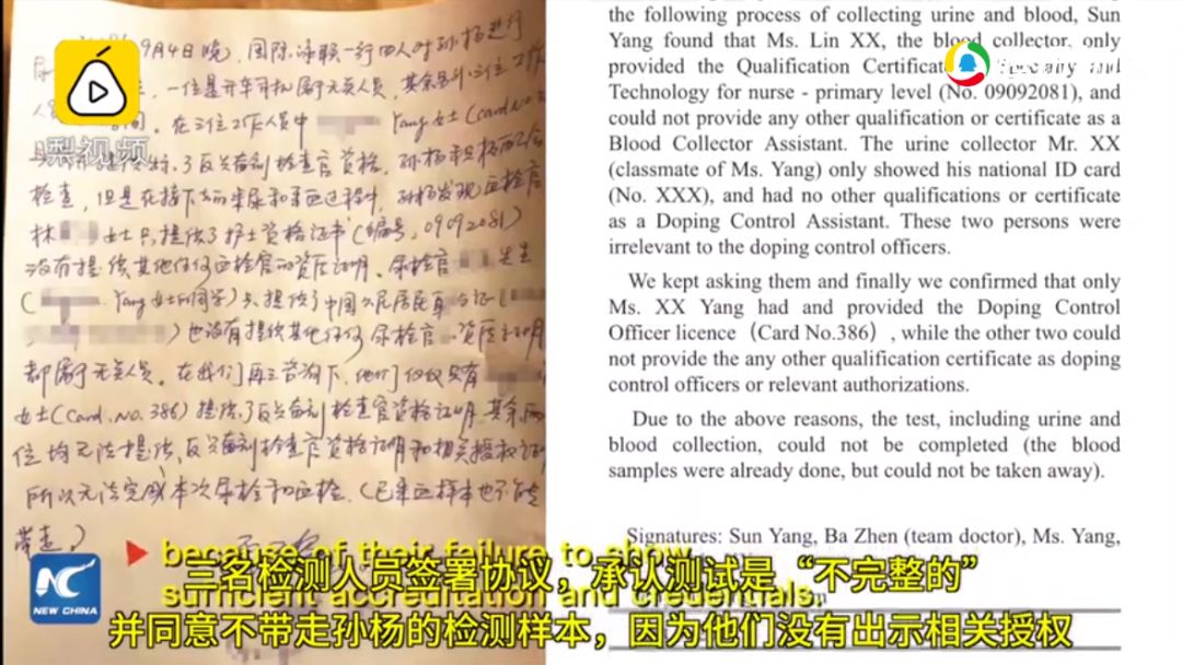 那么,那天对孙杨进行体液标本采集的人是个什么资质?