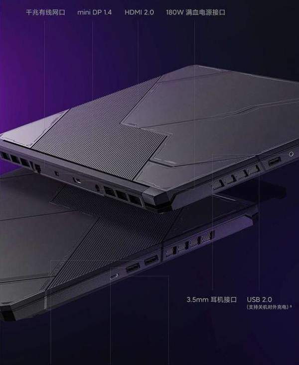 Redmi G 游戏本还拥有丰富的接口配置,包含 USB Type-C、USB 3.1 Gen2、USB 2.0、mini DP 1.4、HDMI 2.0、3.5mm 耳机接口和 180W 满血电源接口等九大丰富接口应用。