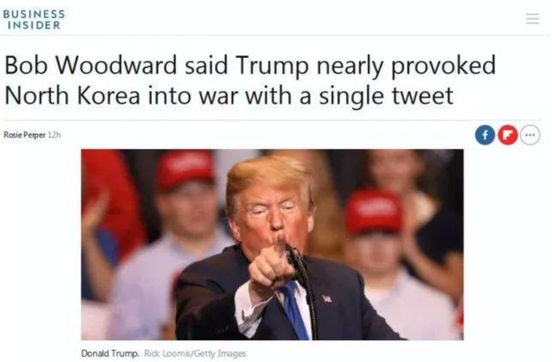 ▲ 伍德沃德爆料:特朗普差点因为一条推文引发对朝鲜的战争