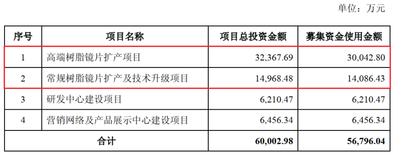 值得一提的是,提价带来产能利用率越来越不饱和时,明月镜片上市最主要的募资用途依然是扩建产能。