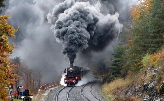 ▲蒸汽机驱动的火车