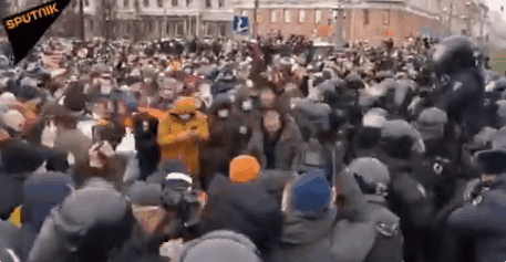 今年1月,莫斯科示威者与警察爆发冲突 卫星通讯社视频截图