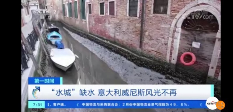 近期,素有“水城”之称的意大利古城威尼斯水位大幅下降,出现了罕见的缺水现象,内陆河道多处干涸,一片泥泞,当地的主要交通工具“贡多拉船”纷纷搁浅在岸边。威尼斯内陆河流目前的平均水位为海拔负0.35米,与去年遭遇洪灾时的水位形成巨大反差。