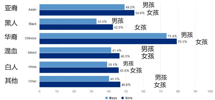 男孩和女孩成绩最大的差距是在亚洲其他族裔群体中。