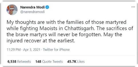 面对惨重的伤亡,总理莫迪更是在推特上表示,战士们的牺牲永远不会被忘记。