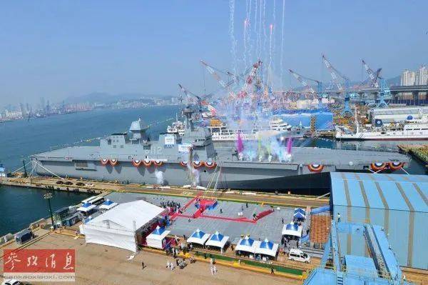 ▲资料图片:韩国海军“马罗岛”号两栖攻击舰下水仪式现场。