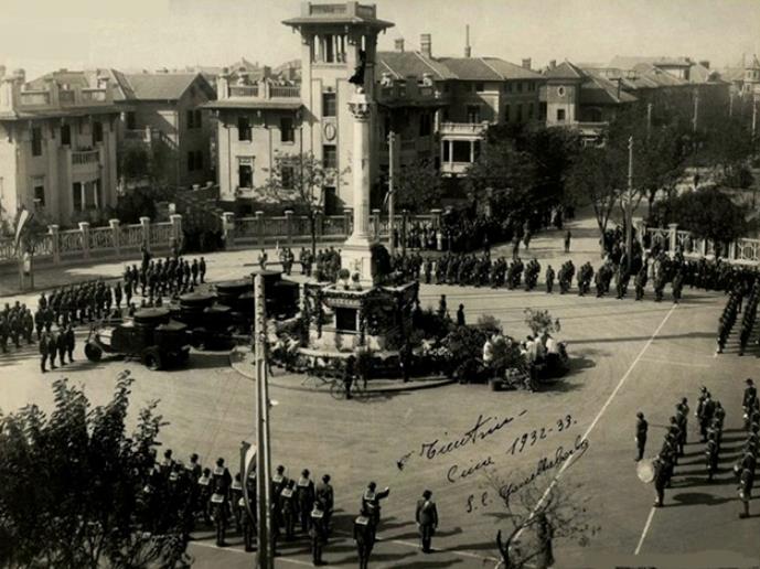 下图是当时天津英租界的戈登堂,可以看出美国士兵在列队,因为当时美国人在天津也有兵营,美国的马歇尔当时就在1924-1927年以军官的身份在天津待过三年,就是二战后提出振兴欧洲的“马歇尔计划”的那个马歇尔。而如前文所述,美国租界被他们私自和英国人达成协议,并入到了英租界里面。
