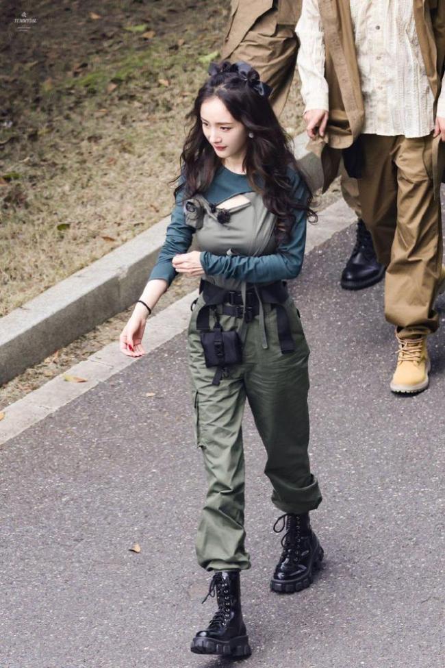 照片中的杨幂穿一身工装风服装,扎着公主头,即使包裹得严严实实也能看出完美身材,许多网友直呼“被杨幂身材辣到”,“美女好辣嘶哈嘶哈”。