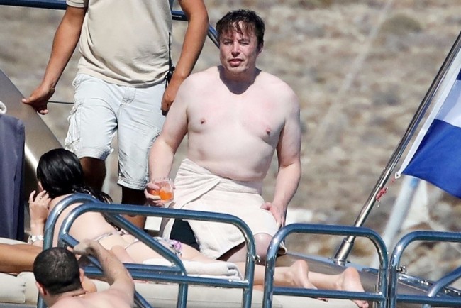 【马斯克被父亲催吃减肥药, 大佬脂肪四溢白到发光】特斯拉CEO埃隆·马斯克(Elon Musk)的父亲周一透露,在看到儿子最近在希腊游艇上光着膀子嬉戏的照片后,他已经敦促儿子吃减肥药来减肥。上月,马斯克被拍到在希腊的一个著名旅游海岛上度假。当时,他光着上身,露出了一身白花花的肥肉。随后,马斯克的裸身照在网上疯传,引发网友的调侃。马斯克自嘲称,他以后得多脱脱上衣,放松自己。