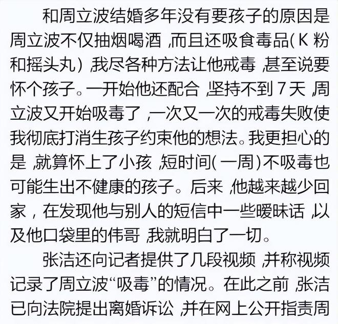 张洁在信中控诉了周立波的忘恩负义,并列举了周立波吸毒、家暴、出轨等多项罪名……舆论发酵后,无数网友纷纷开始讨伐周立波,导致周立波人气大幅度下降。