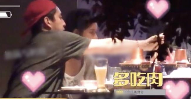 两人来到了饭店里吃火锅,王大陆还亲手给女友夹菜,十分贴心。