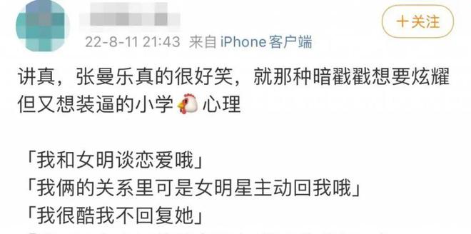 张曼乐的行为逻辑是这样的:我睡了女明星,女明星舔我,我自己有圈子,我不关心女明星的圈子。