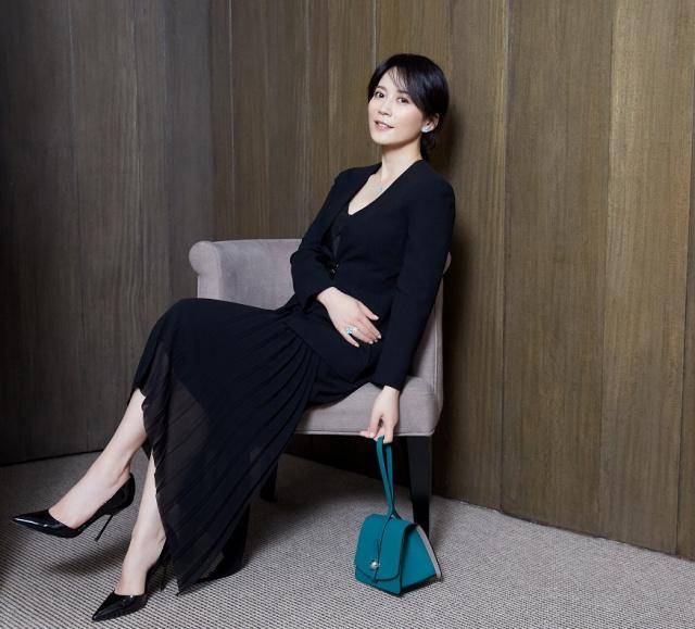 51岁俞飞鸿近照罕见曝光,穿黑色紧身长裙超有气质,少女感十足