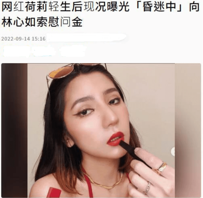起因就是在9月14日女网红“荷莉”所属经纪公司在向媒体公开荷莉轻生获救后情况的同时,竟然向“受害者”林心如索要赔偿。