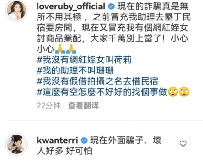 原因就是林心如发现她冒充自己的侄女及助理,各种推销自己,甚至借着自己的名号各种疯狂捞金,导致不少人发帖表示上当受骗,影响到自己的名誉,这才出面打假。