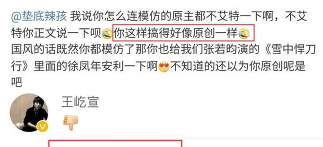 不止网友喊话垫底辣孩艾特一下原主,原主本人也出来评论,评价了一个low的表情,这件事情也很快发酵。迫于舆论的压力,垫底辣孩删除了原来的博文,换上了有标注原创的博文——