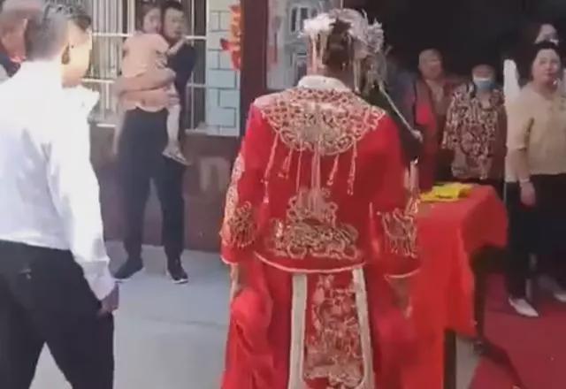 新郎看到这一幕的时候,害怕新娘摔倒,想暖心地去搀扶她。没想到,就在新郎要碰到新娘的手时,新娘下意识地躲开了,回头瞥了新郎一眼,看起来一副不情愿的样子。